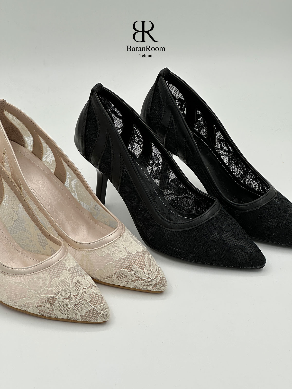 کفش پاشنه ۷ سانت توری استرچ (دو رنگ)